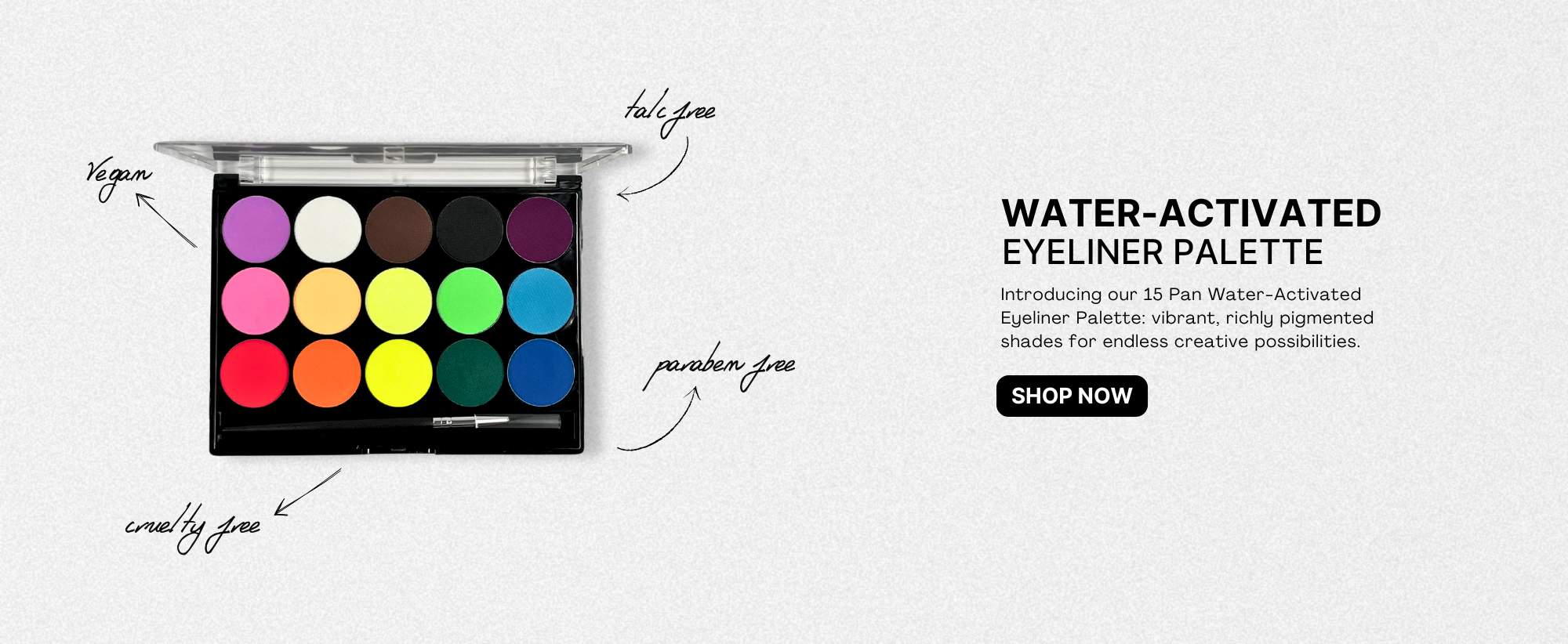 Introducing our new 15 Pan Water-Activated Eyeliner Palette! This vibrant collection offers richly pigmented shades that activate with water, perfect for bold & creative graphic liner looks.